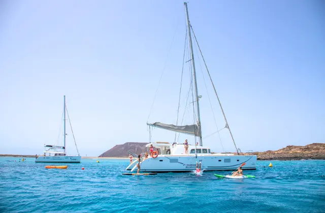 We start our excursion from Corralejo Port, with the splendid view of Islote de Lobos in front of us. We will navigate through "El Río", the sea channel that separates Fuerteventura from the islet, until we approach the western part of Isla de Lobos. Here, we can admire the beautiful Montaña de La Caldera, a half-submerged volcanic cone.