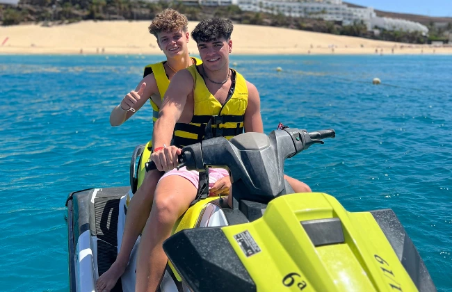 🔍 Detailed description: Experience an adrenaline-filled ride with a Jet Ski in Fuerteventura. Perfect for exploring the coast in a dynamic and fun way, Jet Skis are stable, safe, and suitable for beginners. Riding one requires balance and focus, making it a complete physical activity. Our instructors will guide you step-by-step to ensure a thrilling but safe experience, ideal for adventure lovers and sea enthusiasts alike.