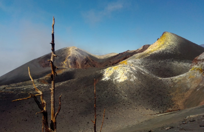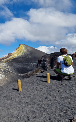 Walk on volcanic ash and solidified lava landscapes until reaching the closest accessible point to the crater.